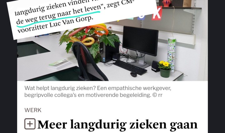 CM voorzitter Luc van Gorp in De Standaard: “Steeds meer langdurig zieken vinden via deeltijds werk de weg terug naar het leven”.