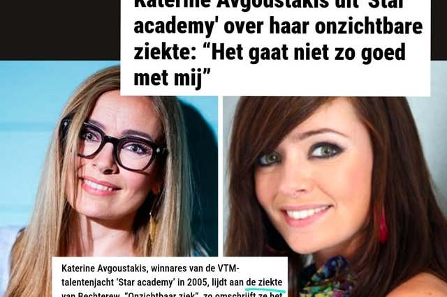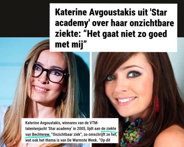 Katerine Avgoustakis, winnares van de VTM-talentenjacht ‘Star academy’ in 2005, heeft de ziekte van Bechterew en schrijft erover in een openhartige post.
