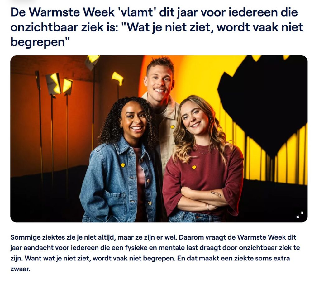 In 2025 focust De Warmste Week op mensen met een onzichtbare ziekte.