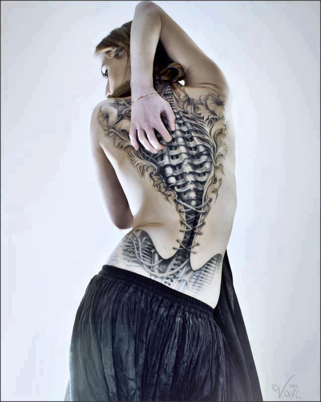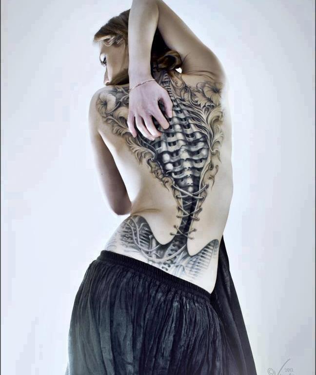 Deze tatoeage is van de Poolse artiest Sebastian Zmijewski bij zijn zus en model Milena Zmijewska.