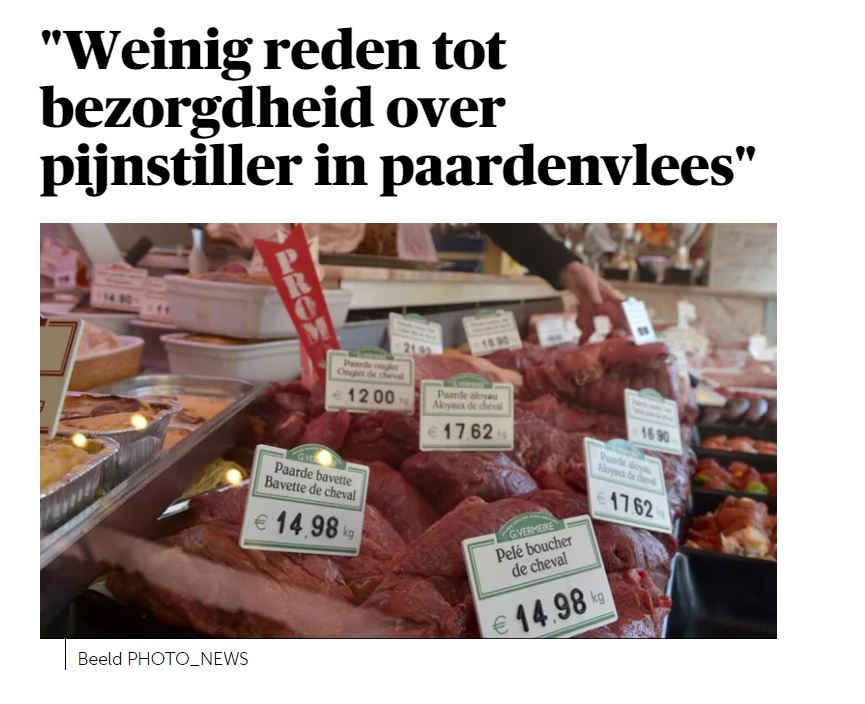 “Weinig reden tot bezorgdheid over pijnstiller in paardenvlees”, De Morgen, 15 april 2013.