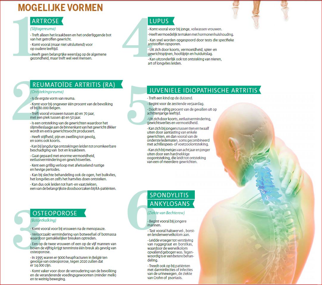 Eindelijk eens serieuze aandacht voor reuma in de krant. En ook spondylitis ankylosans (de ziekte van Bechterew) staat bij de ‘mogelijke vormen’ van reuma.