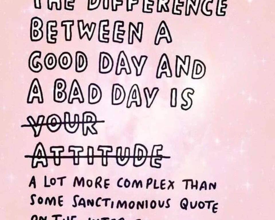 ➡➡ ‘Het verschil tussen een goede dag en een slechte dag is veel meer complex dan een of andere schijnheilige quote op het internet’