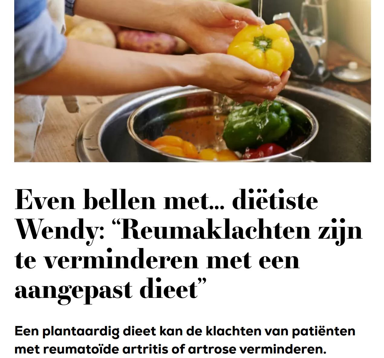 Ikzelf ben al vele jaren vegan (geen dierlijke producten). Mijn ziektes (Crohn & SpA) zijn daarom niet miraculeus verdwenen, maar het helpt me zeker en is sowieso ook beter voor mijn algemene gezondheid.