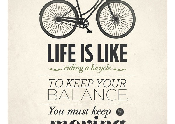 Het leven is als met de fiets rijden. Om je evenwicht te houden moet je blijven bewegen!